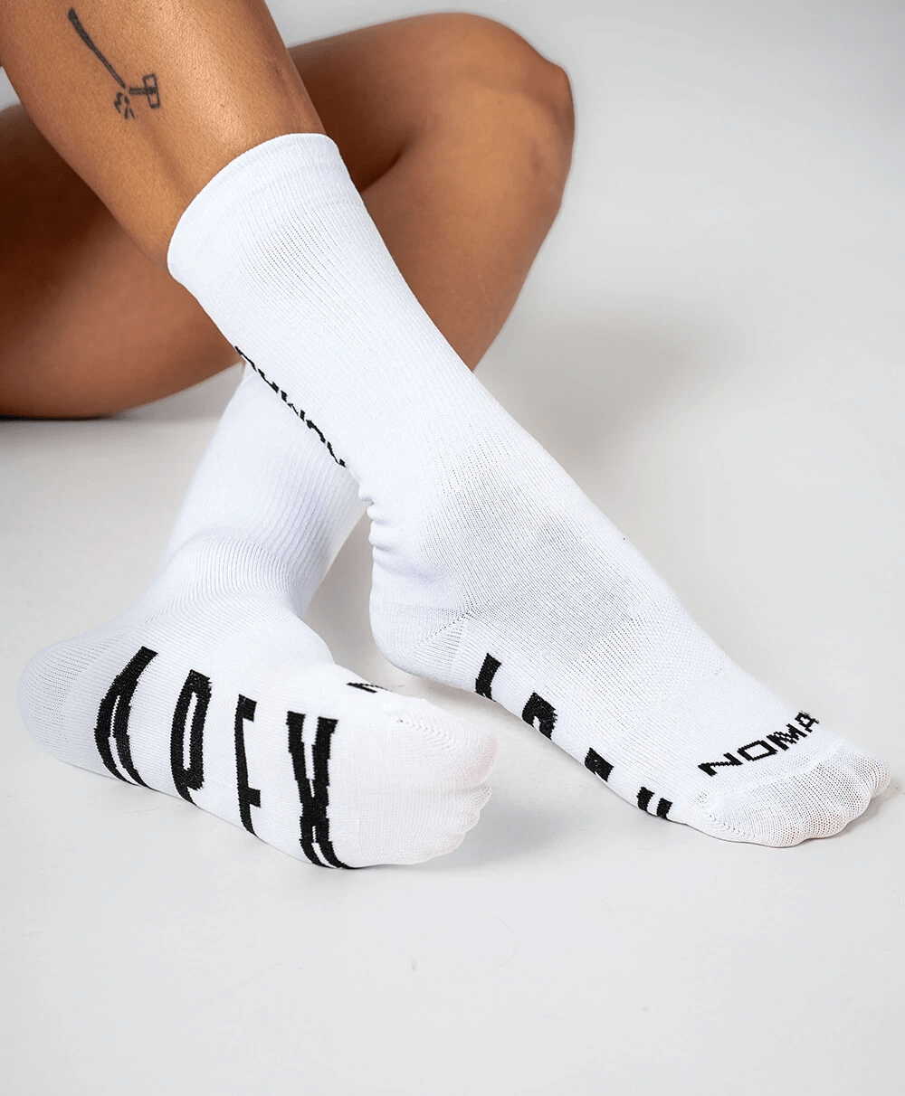 Meia Nomad Apex Branca – Conforto, Respirabilidade e Performance no Pedal