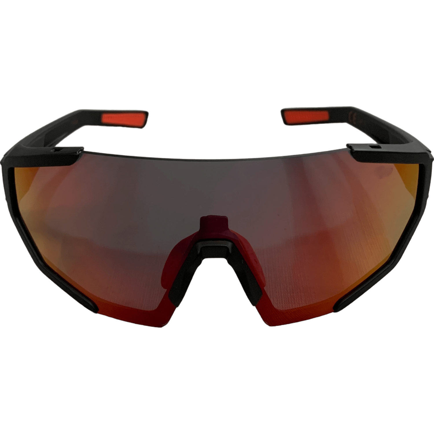 O design ergonômico e o ajuste confortável garantem que os óculos permaneçam firmes no rosto, proporcionando estabilidade durante suas atividades. A combinação de cores preto e vermelho confere um visual moderno e estiloso.