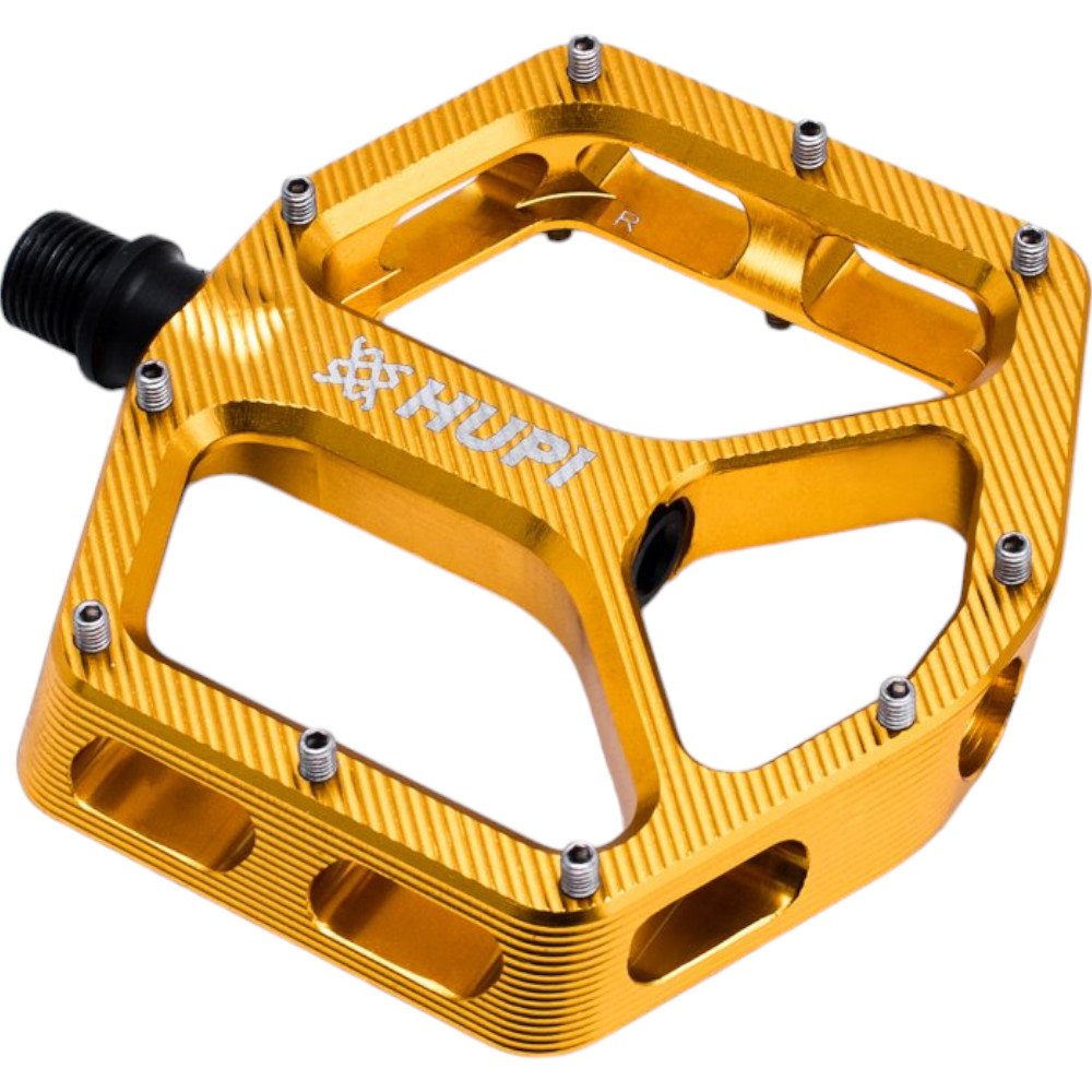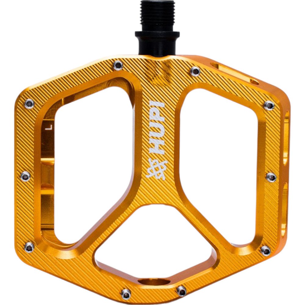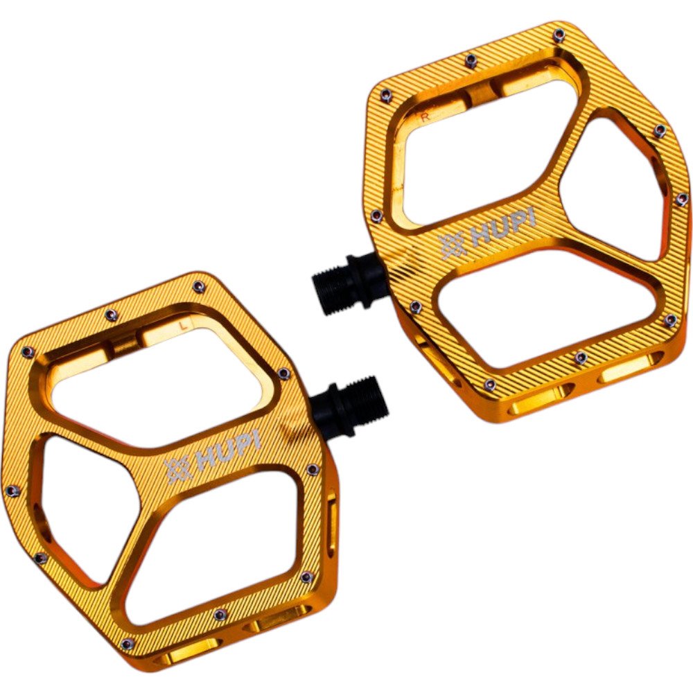 Design Elegante: Adicione um toque de estilo à sua bicicleta com o acabamento dourado do Pedal HUPI Strip. Além de desempenho excepcional, este pedal também oferece um visual elegante que eleva o visual da sua bike.