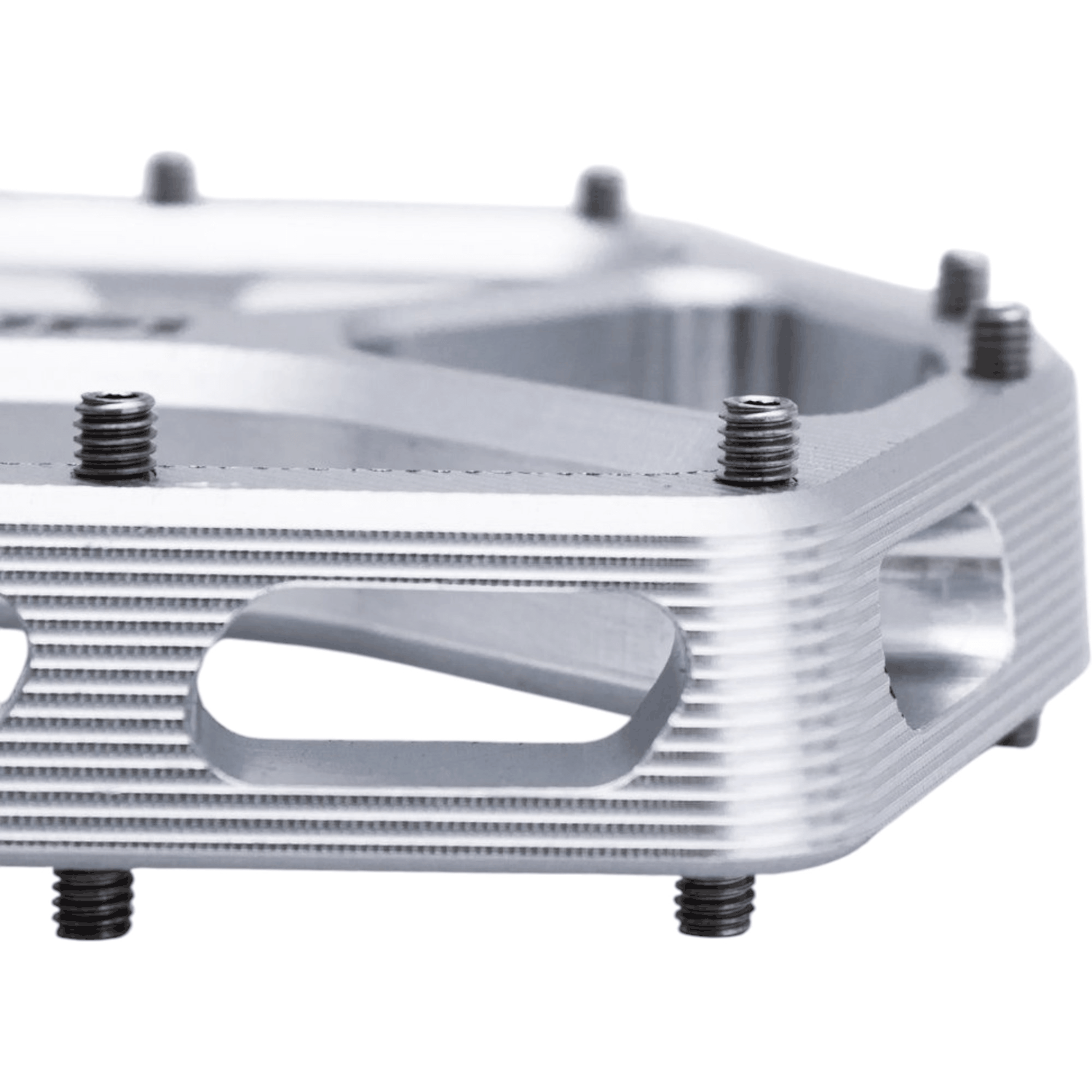 Com uma plataforma ampla de 105mm x 100mm, este pedal proporciona um excelente apoio para os pés, melhorando a estabilidade e a eficiência na pedalada. Os pinos aderentes na superfície garantem um grip firme, evitando deslizes mesmo em condições molhadas ou terrenos irregulares.