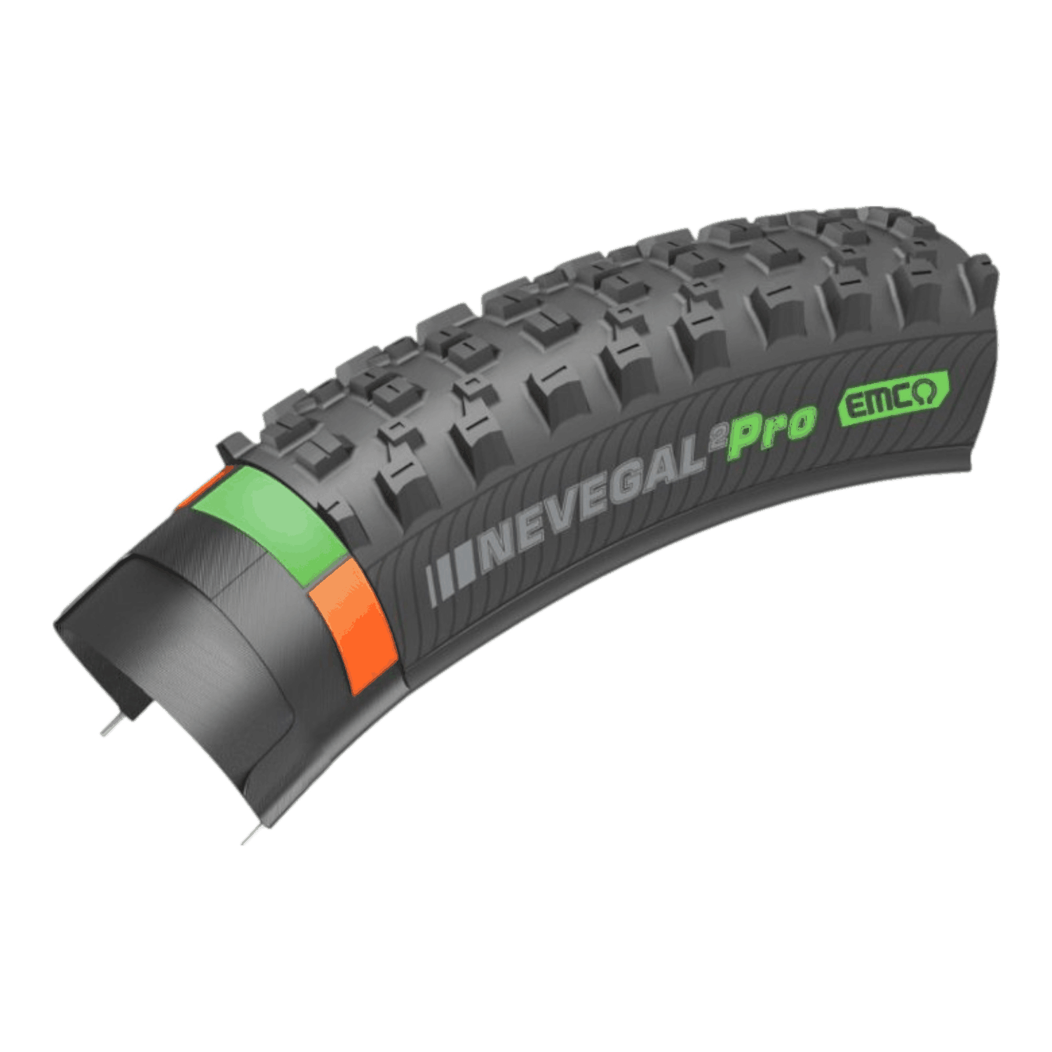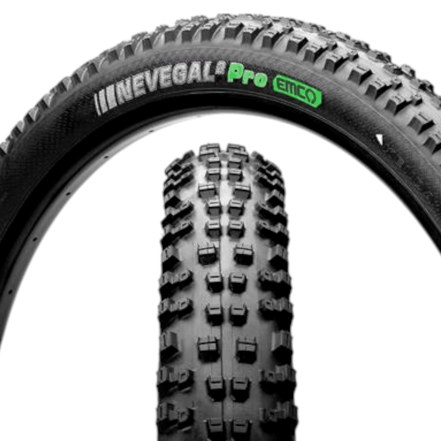 O Pneu Nevegal 2 Pro apresenta uma cobertura dobrável com Kevlar, facilitando o transporte e a instalação, e é compatível com tubeless e câmaras de ar. Com pressão máxima de 35 PSI, ele se adapta a diferentes estilos de pilotagem. A carcaça ATC inclui um reforço interno que aumenta a resistência a furos em 174% em relação ao Nevegal original, enquanto os 60 TPI garantem flexibilidade e durabilidade. O composto EN-DTC de duplo composto equilibra aderência e desgaste, ideal para Enduro e All Mountain.