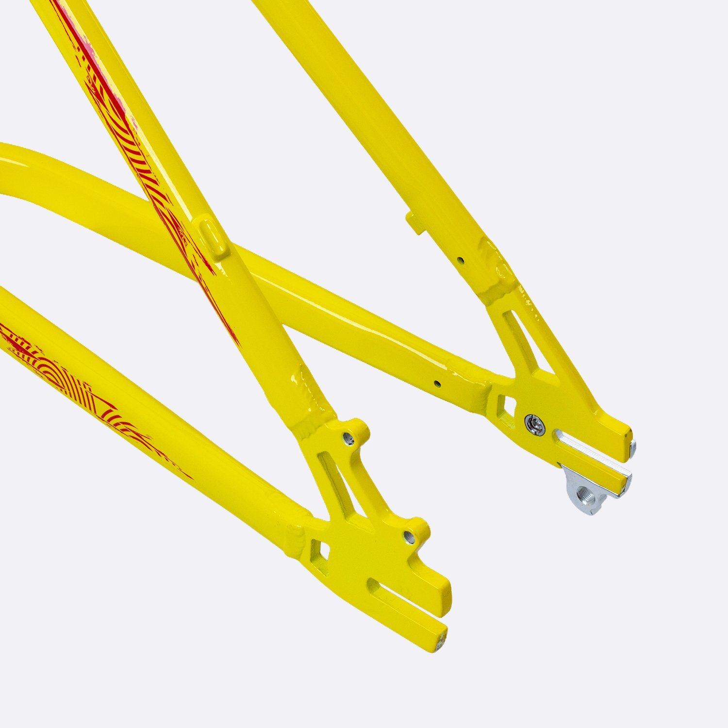 Equipado com gancheira horizontal, o Naja V10 permite melhor ajuste de tensão da corrente, sendo perfeito para montagens single speed ou configurações específicas que exigem precisão no alinhamento da roda traseira. Sua pintura nas cores amarelo, azul e vermelho entrega um visual esportivo e diferenciado, ideal para quem quer se destacar tanto nas pistas quanto no rolê urbano.