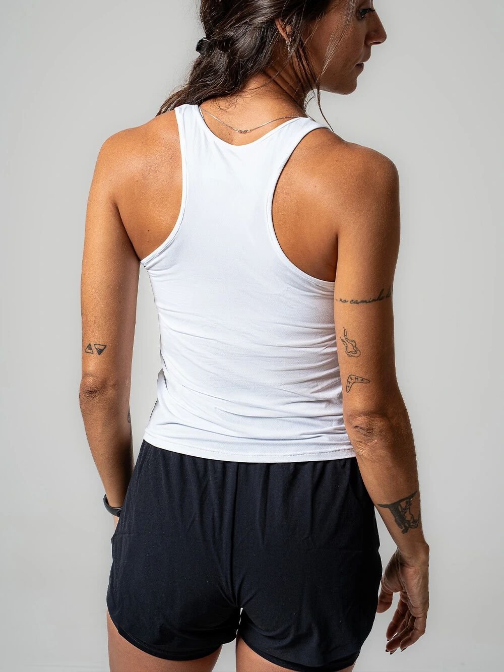 Regata Nomad Feminina Run Trail Branca – Leveza, Respirabilidade e Performance para Seus Treinos