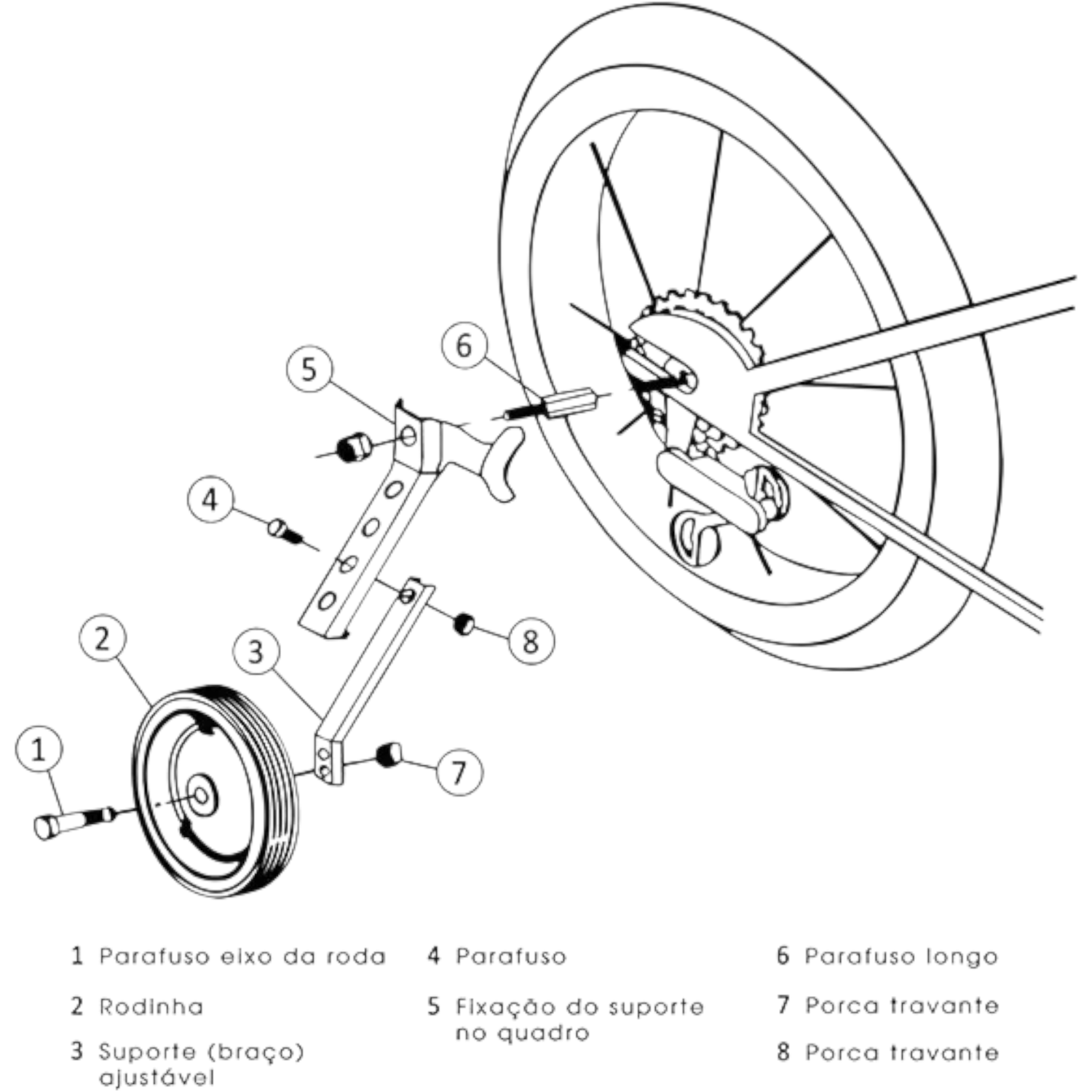 Compatível com bicicletas aro 16, 20 e 24;