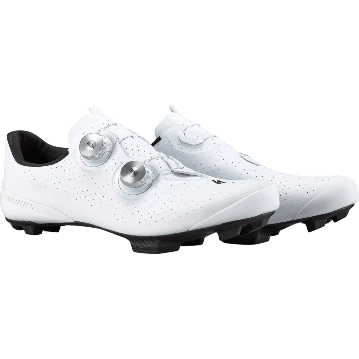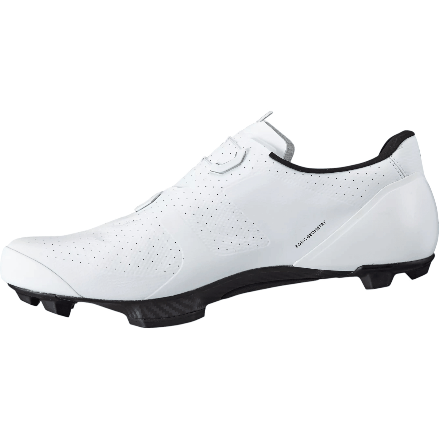 A Sapatilha S-Works Recon MTB possui pontões de alta densidade e novos calços, permitindo ajustes na interface do pedal para uma plataforma semelhante à de estrada, maximizando a eficiência. A tecnologia Body Geometry inclui a cunha Varus, arco longitudinal e botão metatarsal, otimizando o alinhamento de quadril, joelho e pé para maior potência e redução de lesões. O contraforte assimétrico do calcanhar suporta o lado medial, removendo material lateral para uma gola mais baixa, enquanto a viga I interna adiciona rigidez e leveza, eliminando reforços extras.