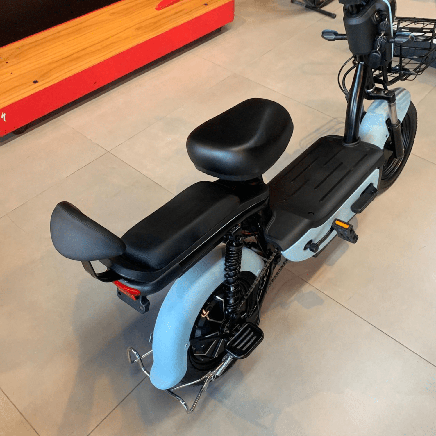 Bicicleta Elétrica Scooter 600W 48V foi desenvolvida para quem busca comodidade, economia e eficiência no dia a dia. Com motor de 600W e conjunto de 4 baterias 12V 15Ah (48V), ela entrega ótima autonomia e velocidade ideal para deslocamentos urbanos. Silenciosa, ecológica e com baixíssimo custo de manutenção, oferece uma condução suave e estável. Seu assento duplo proporciona mais conforto, e a cesta frontal adiciona praticidade para carregar objetos. Um modelo completo para quem deseja mobilidade elétrica segura, econômica e moderna.