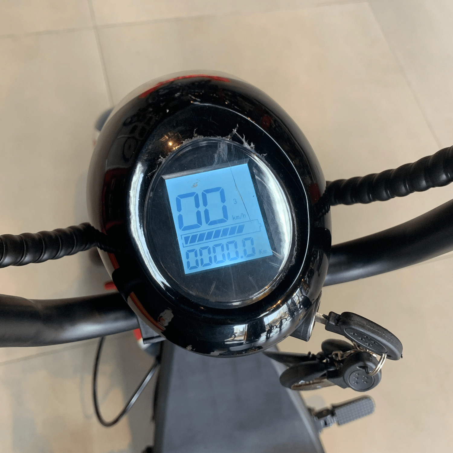 - Painel com Indicadores: Luz Alta, Velocidade, Nível da Bateria, Odômetro Total e da Viagem;