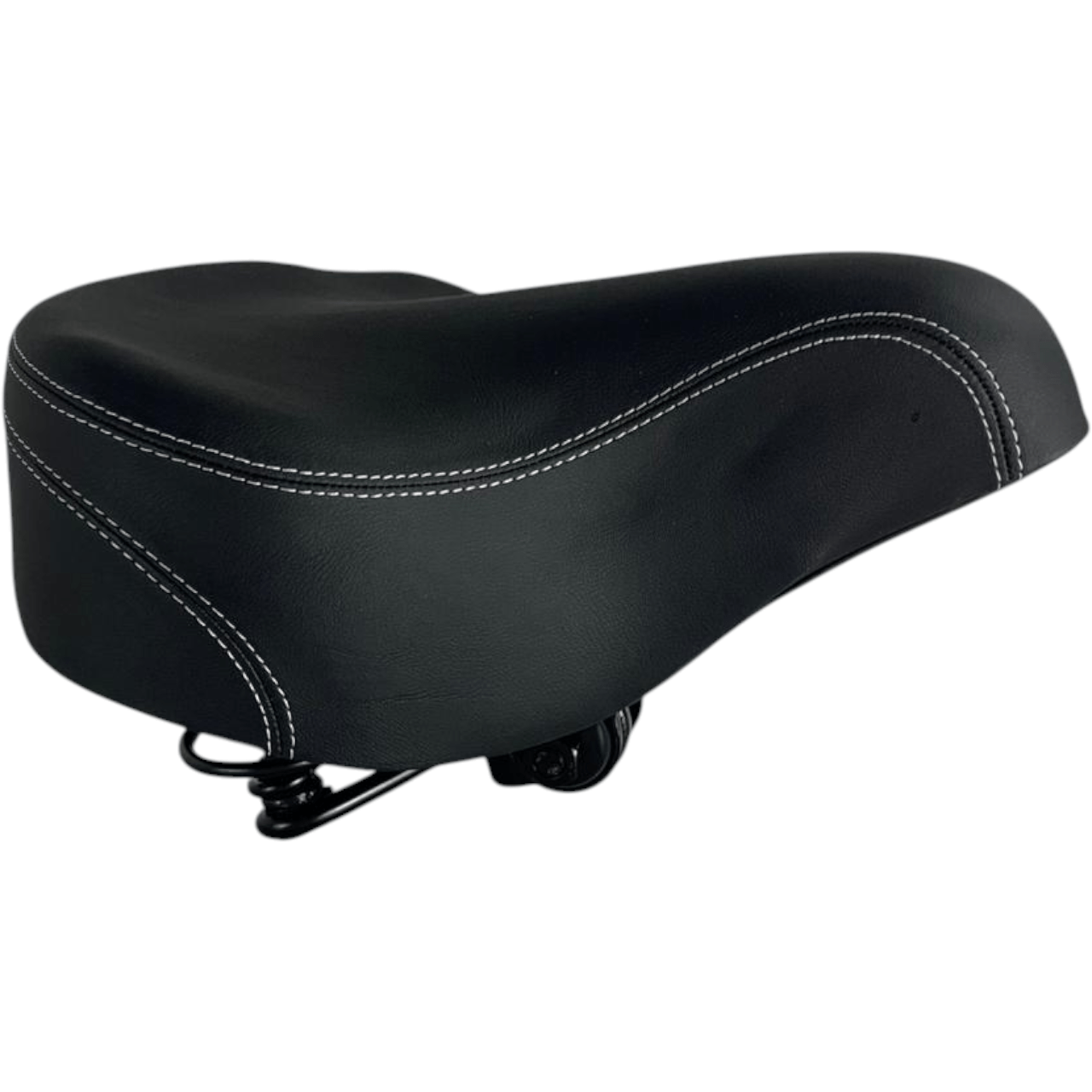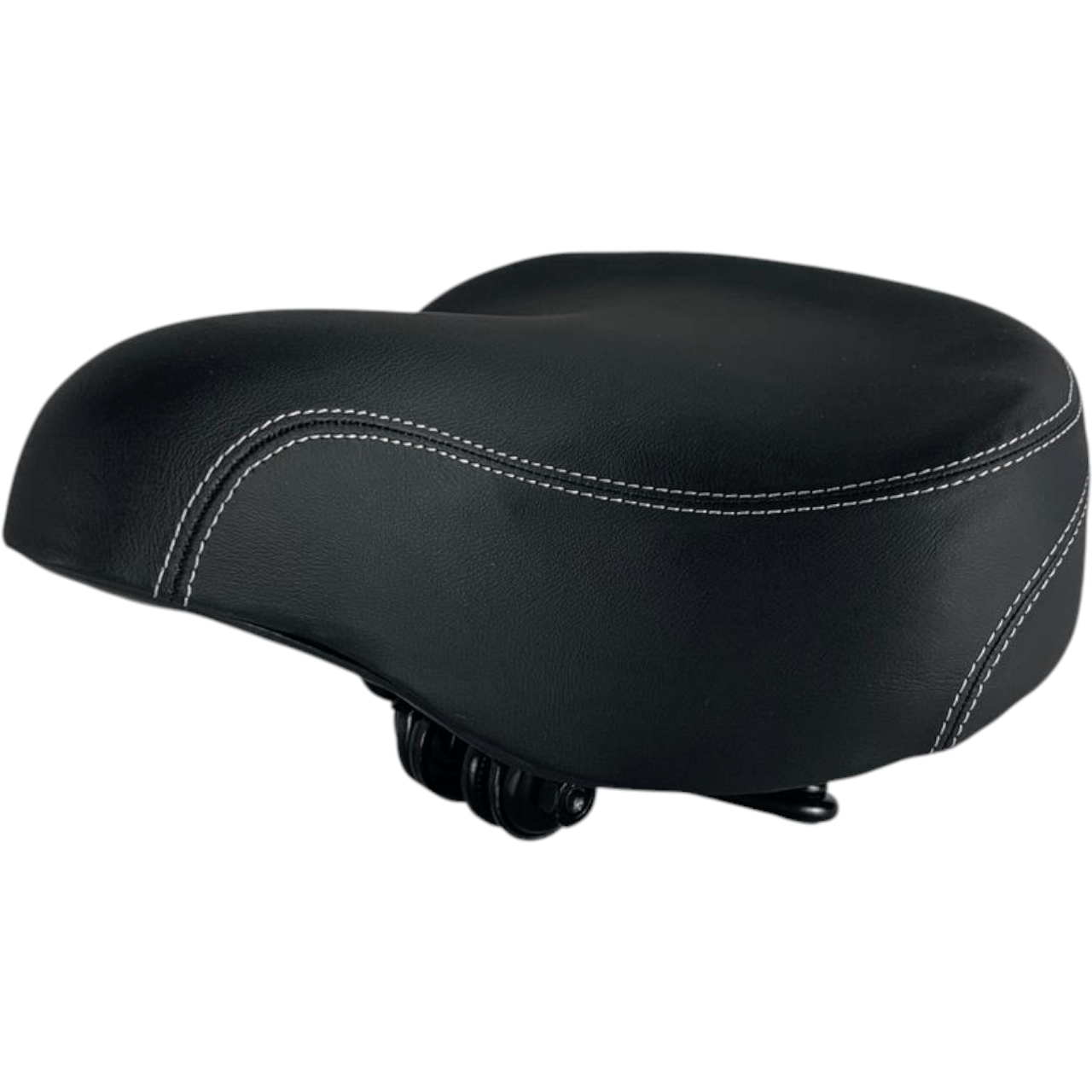 O acabamento em material sintético resistente garante durabilidade e fácil limpeza, enquanto o formato largo e ergonômico oferece apoio ideal para a região pélvica, evitando desconfortos em longos percursos. Além disso, o visual clássico na cor preta combina perfeitamente com qualquer tipo de bicicleta, especialmente modelos urbanos e de passeio.