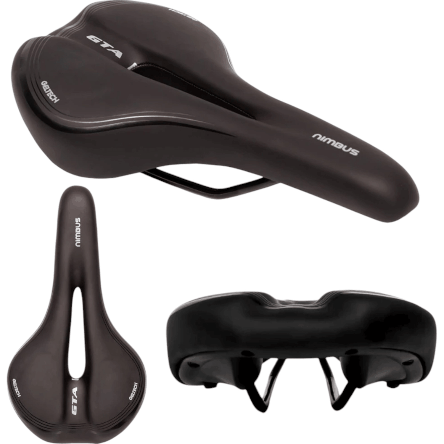 Adquira já o Selim GTA Nimbus Gel Tech Vazado MTB Preto e pedale com mais ergonomia, maciez e durabilidade!