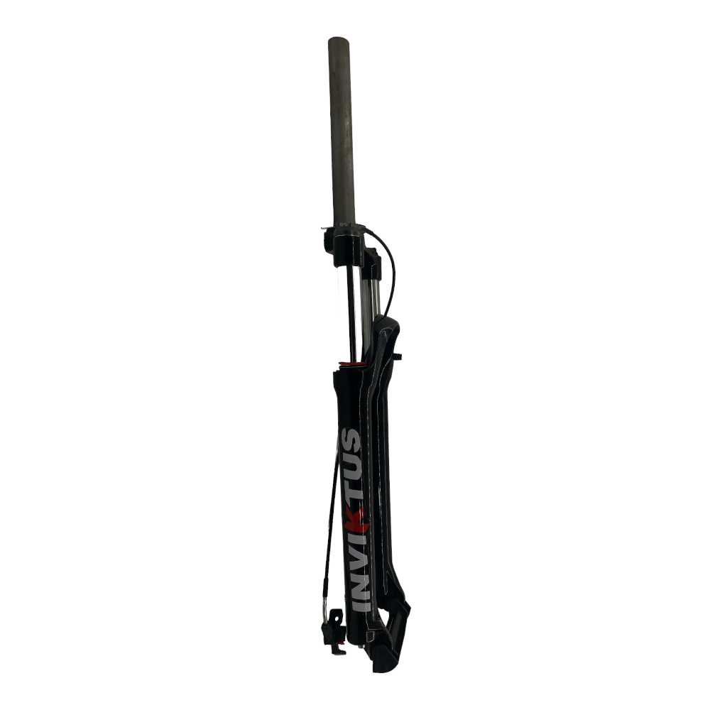 A suspensão INVIKTUS com trava no garfo e regulagem de pressão tem curso de 100mm te oferece ótimo desempenho seja na estrada de terra ou no asfalto.
