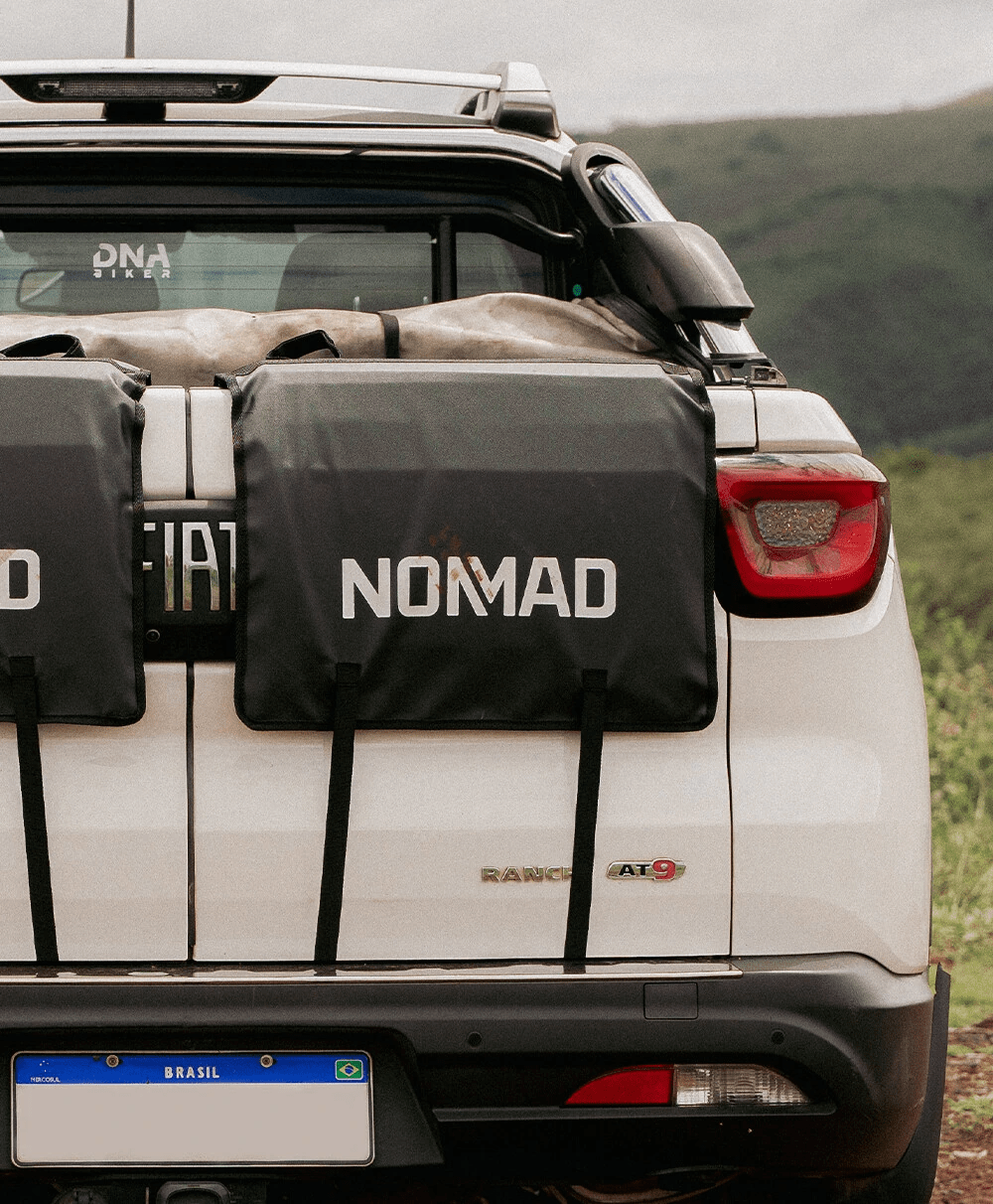 Projetado para quem valoriza proteção de verdade, o Nomad Duo conta com tripla camada de E.V.A especial, garantindo excelente amortecimento durante o transporte. O lado interno possui tecido aveludado extra macio, que evita riscos e danos na lataria da caminhonete, enquanto mantém as bikes firmes e estáveis.